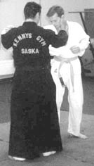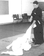Remember that Ukes moving in a circular direction so you need to fit into this.The harder he/she attacks the worse it is for them.At this point you also have the option of using your leg and sweep the ankle,increasing the velocity of his/her fall.